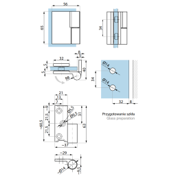 Mosiężny zawias unoszony do kabiny prysznicowej przeznaczony do montażu drzwi szklanych do ściany (szkło-ściana). Mechanizm unoszenia ułatwia otwieranie drzwi, zmniejsza tarcie o podłoże oraz blokuje drzwi w pozycji zamkniętej.